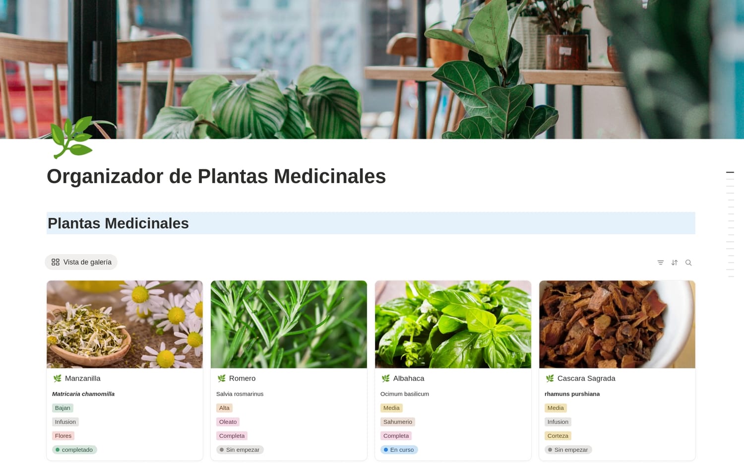 🌿 Plantilla Gratuita: Organizador de Plantas Medicinales en Notion